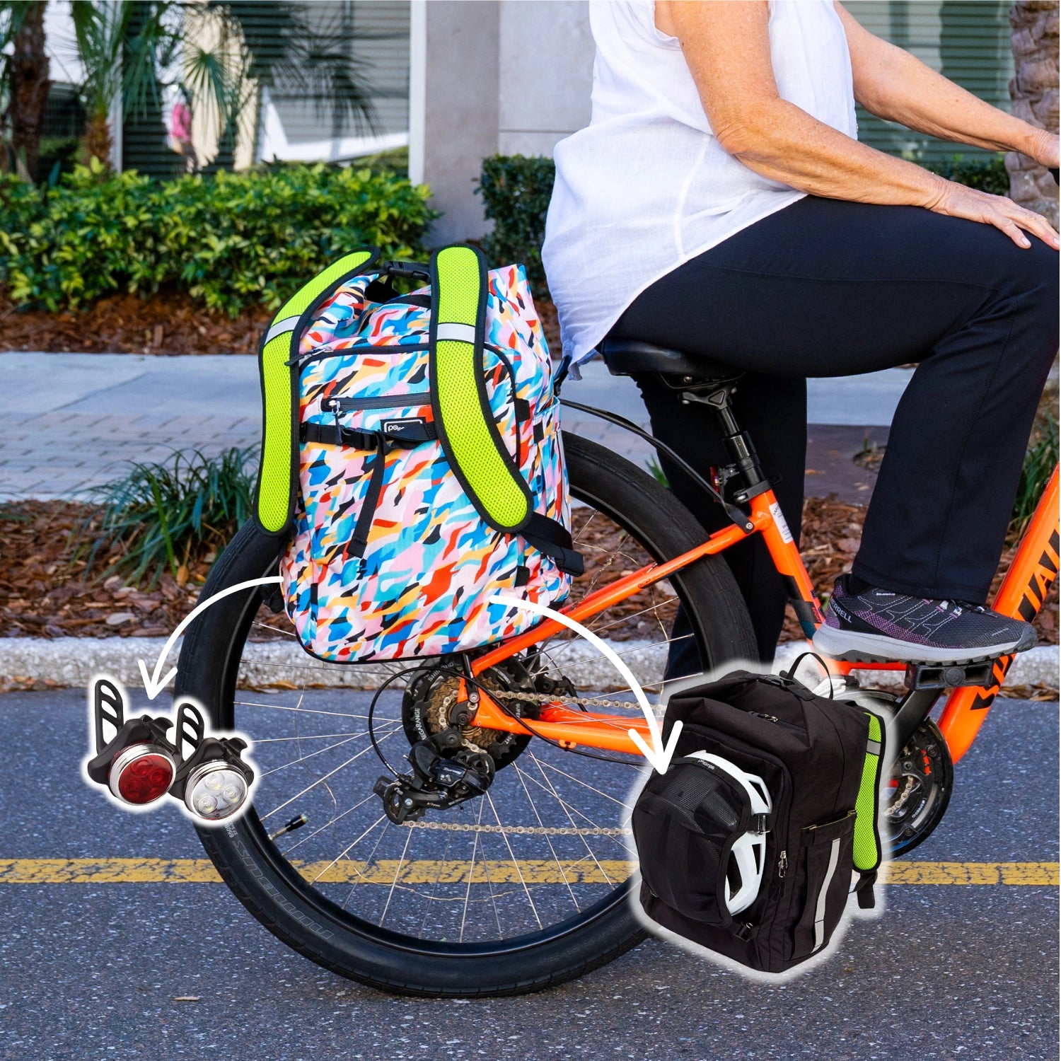 Our bags go on and off a bike or scooter without slowing you down