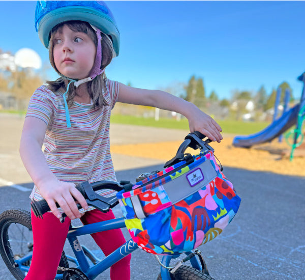 Our adjustable handlebar straps will go along with kids from their first balance bikes and scooters until they're tearing it up on their 26" wheels.