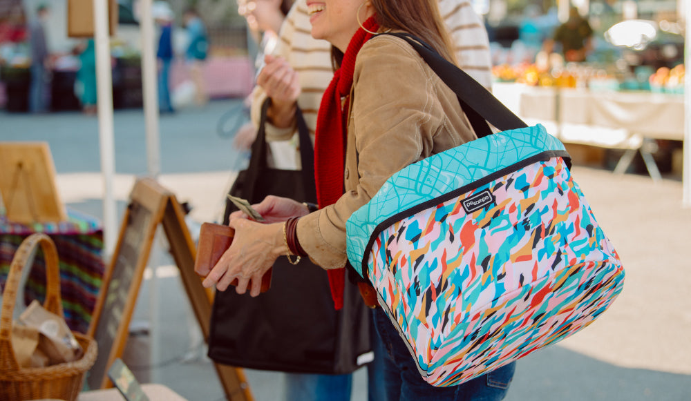An Internal, roomy compartment of 25L. And of course it wouldn't be a Po Campo bag without pockets! Pinellas features an internal zippered pocket and two exterior pockets. The Pinellas is also equipped with a drawstring lid to keep groceries or other items in place and shield them from weather.