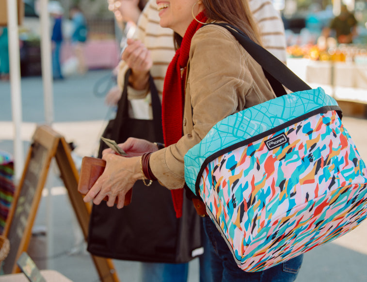 An Internal, roomy compartment of 25L. And of course it wouldn't be a Po Campo bag without pockets! Pinellas features an internal zippered pocket and two exterior pockets. The Pinellas is also equipped with a drawstring lid to keep groceries or other items in place and shield them from weather.