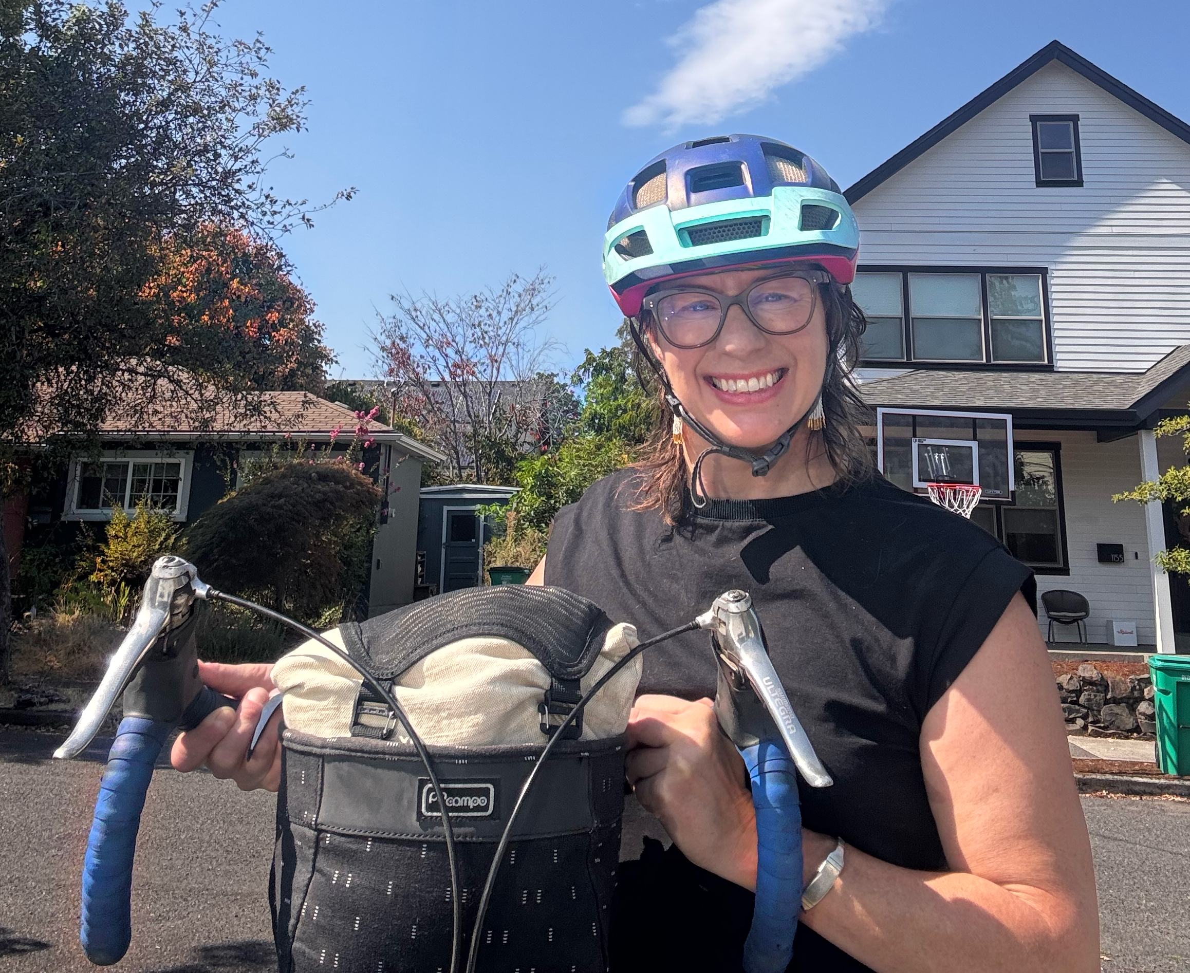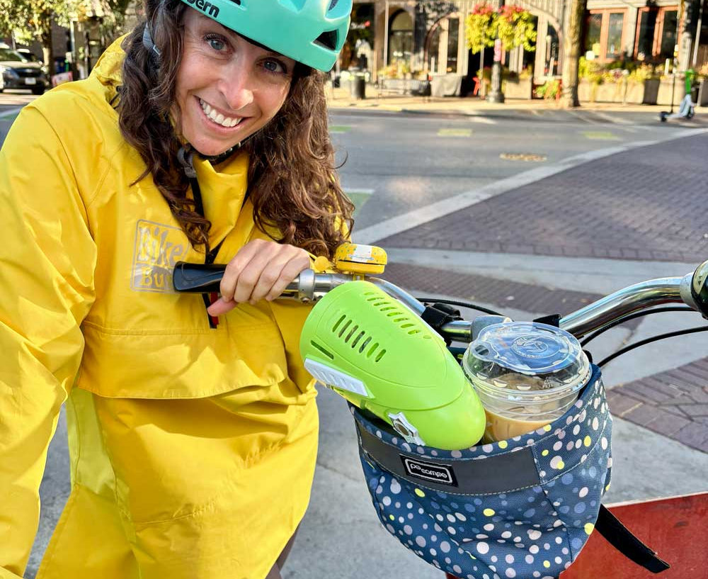The Crescent is perfect for anyone that has a wide range of things they need to stow and access during their ride. Parents, Bike Bus Leaders, people who can store their phone in their back pocket out of fear it will pop out while riding. My crescent is constantly filled with a rotation of various coffee containers, my phone, bubble guns, bullhorn and even small purses. The zipper pocket and lid are there to help keep things even more secure.
