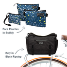 Meet the Katy Essentials Kit: the perfect pairing of stylish functionality and everyday organization. This bundle combines our versatile Katy Trunk Bag, built for effortless on-bike storage and off-bike style, with the limited-run trio of Pace Pouches designed to keep your gear neat, secure, and easy to find. With water-resistant, machine-washable materials and endless ways to use them, this bundle is your all-in-one solution for rides, errands, adventures, and everyday life.