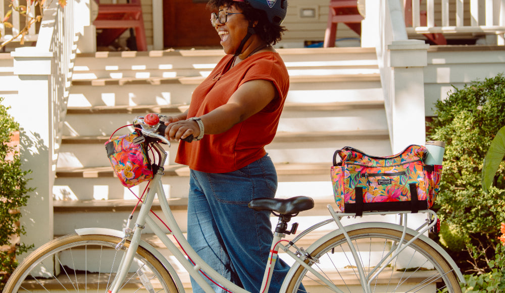 Your ride, upgraded. The Katy Trunk Bag and Crescent Bike Basket are the ultimate everyday duo - giving you structured organization in the back and easy-access storage up front.