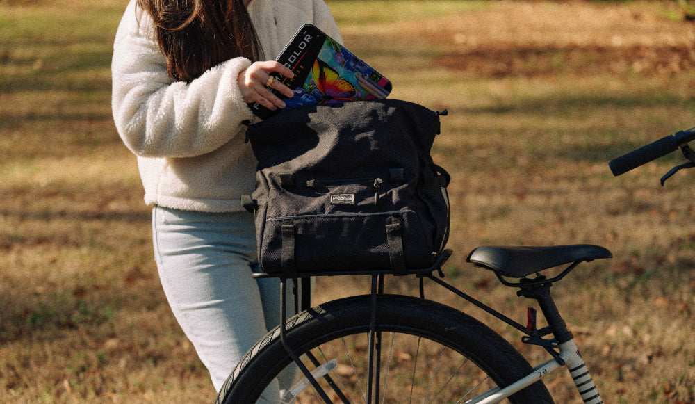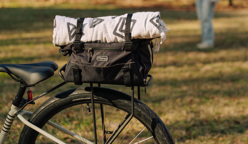 Don’t limit your adventures with limited space! The Vernon Bike Trunk Bag was crafted to comfortably store snacks, clothes, and whatever else you need for a perfect, carefree ride. With waterproof fabric, recycled Reboyarn® lining, and four strong hook and loop attachments sized for most bike racks this bike trunk bag will sustain you wherever you go.