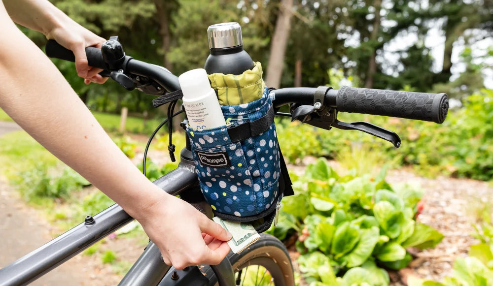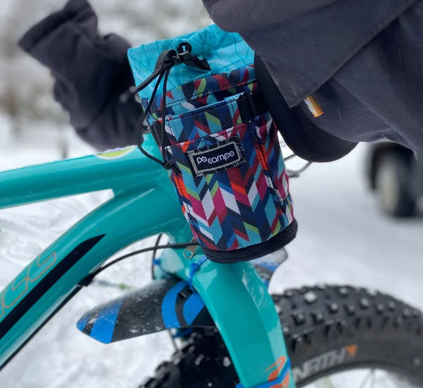 Finally a water bottle bag that fits your biggest water bottles and coffee mugs! With a one-handed cord opening, secure 3-point attachment system, and 2 extra pockets, the Willis Stem Bag makes it a snap to grab water or snacks without stopping. Plus, it’s sustainably made with lining made from recycled water bottles to support you on any adventure. Fuel your ride without losing your momentum.